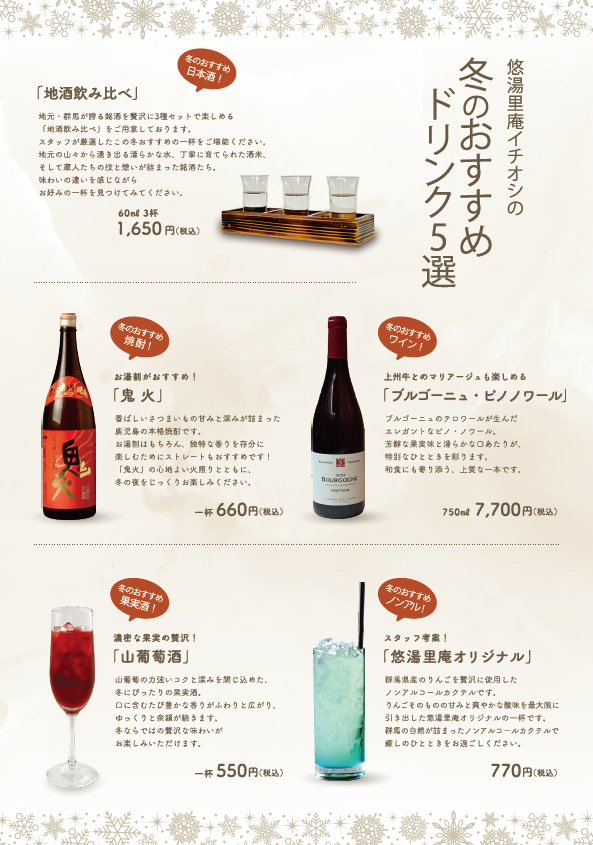 お食事のおともに、冬のおすすめドリンクをご用意しております。